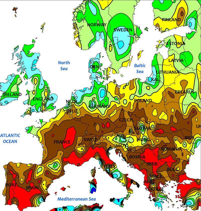 Écart aux normales des températures et précipitations pour l'Europe occidentale.