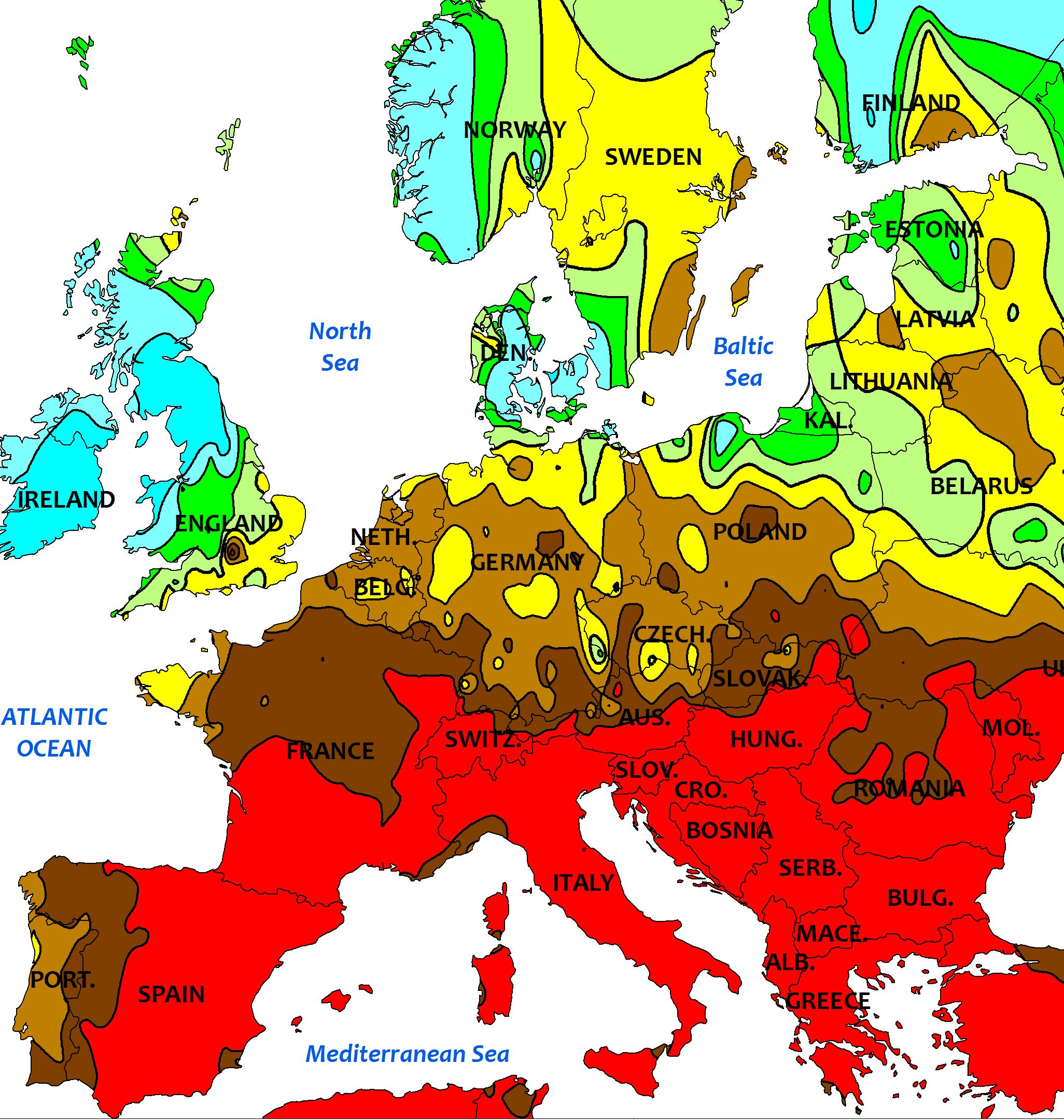 Écart aux normales des températures et précipitations pour l'Europe occidentale.