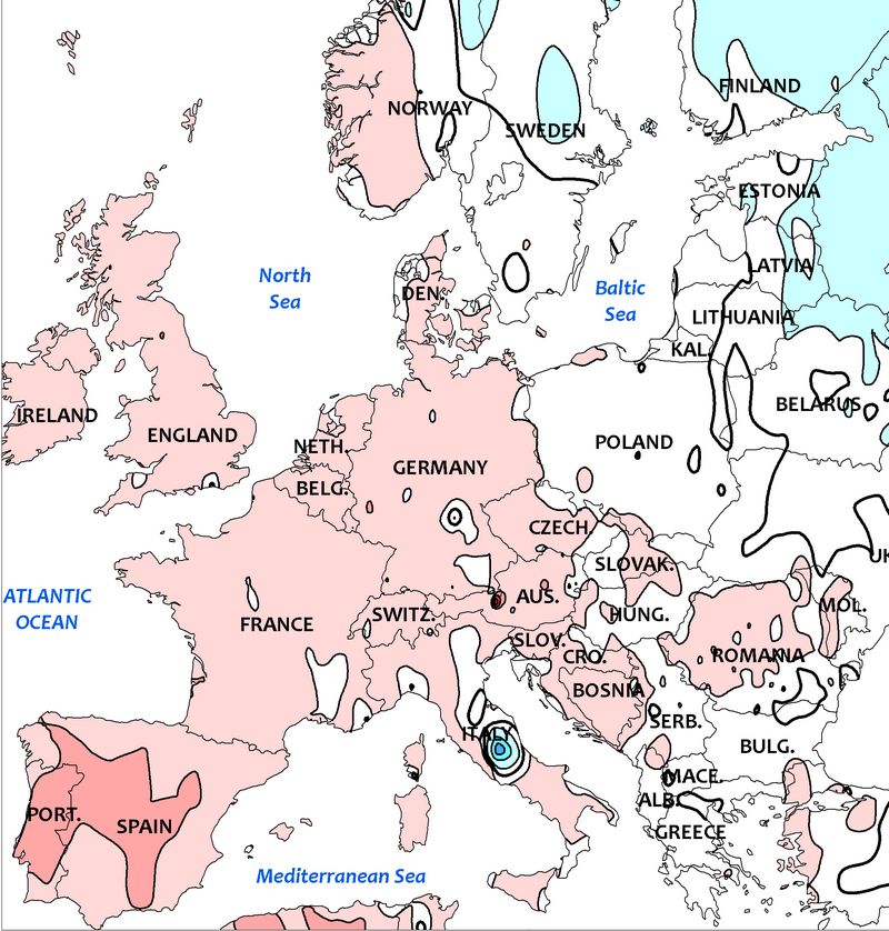 Continental | Anticyclone Allemagne => Europe Est et Anticyclone Golfe de Gascogne |