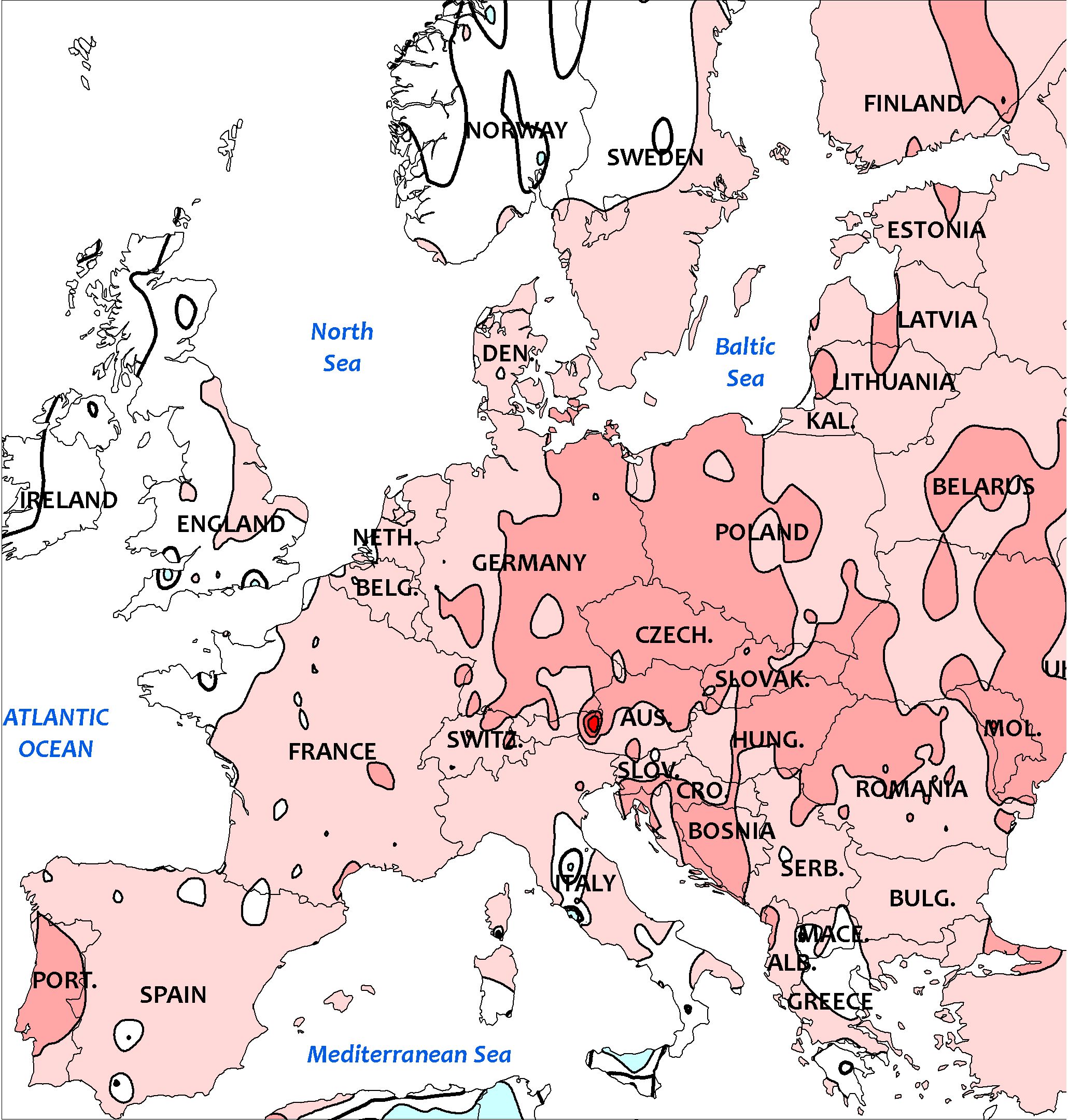 Cette brise de mer pénètre loin à l’intérieur des terres et se fait sentir dans toute la région au nord de la ligne Courtrai-Gand-Anvers avec des températures qui n’atteignent pas 30°C (entre 25°C dans les Polders et 28-29°C à Beitem, Passendaele, Zelzate et Stabroek. Ailleurs, les 30°C sont atteints ou dépassés avec 30-31°C au centre du pays et jusqu’à 33°C en Campine et dans certaines vallées, tout comme en Gaume (33,3°C à Kleine Brogel, 33,1°C à Angleur, 32,6°C à Genk et à Aubange). Même sur les hauteurs, on frôle les 30°C avec 29,6°C à Saint-Hubert et à Elsenborn, mais 28,0°C à Mont-Rigi.