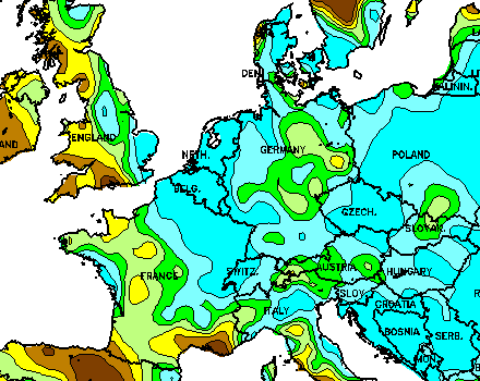 Ecart aux normales des températures et précipitations pour l'Europe occidentale.