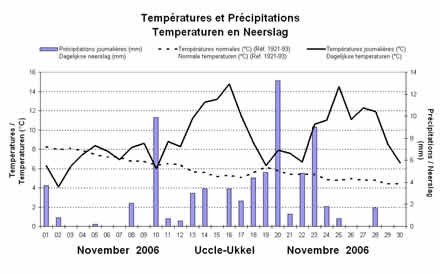 Après les mois de septembre et octobre, ce sera au tour de novembre de se distinguer avec des températures exceptionnellement douces pour la saison suite à une prédominence de masses d'air d'origine tropicale : le record de l'automne le plus chaud jamais enregistré à Uccle a été largement battu, avec des valeurs qui ont véritablement pulvérisé l'ancien record de... 2005, automne durant lequel on avait enregistré une température moyenne de 12.3°C. En 2006, cette valeur a atteint 13.9 °C ! D'après les spécialites, une telle valeur a une probabilité de retour de plus de 500 ans.