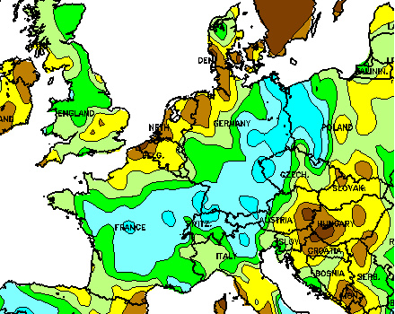Ecart aux normales des températures et précipitations pour l'Europe occidentale.