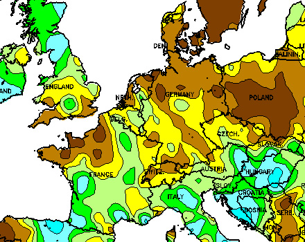 Ecart aux normales des températures et précipitations pour l'Europe occidentale.