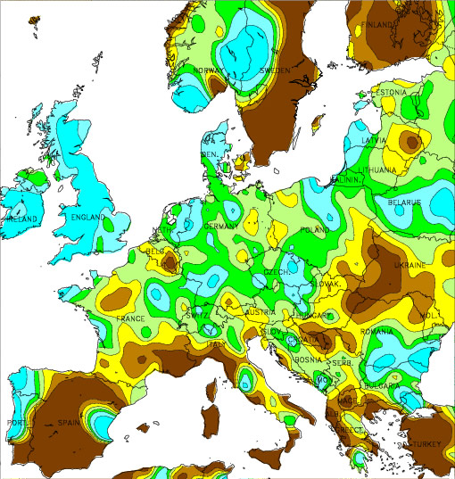 Écart aux normales des températures et précipitations pour l'Europe occidentale.