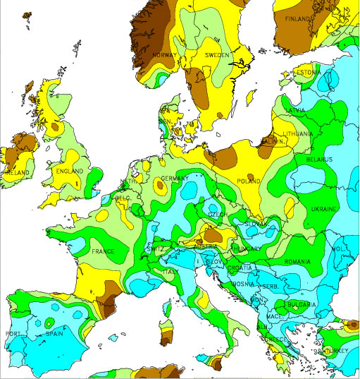 Écart aux normales des températures et précipitations pour l'Europe occidentale.