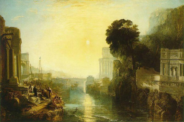 - oranges ou rouges - sur l'horizon peint ici par le peintre William Turner.