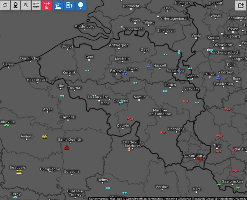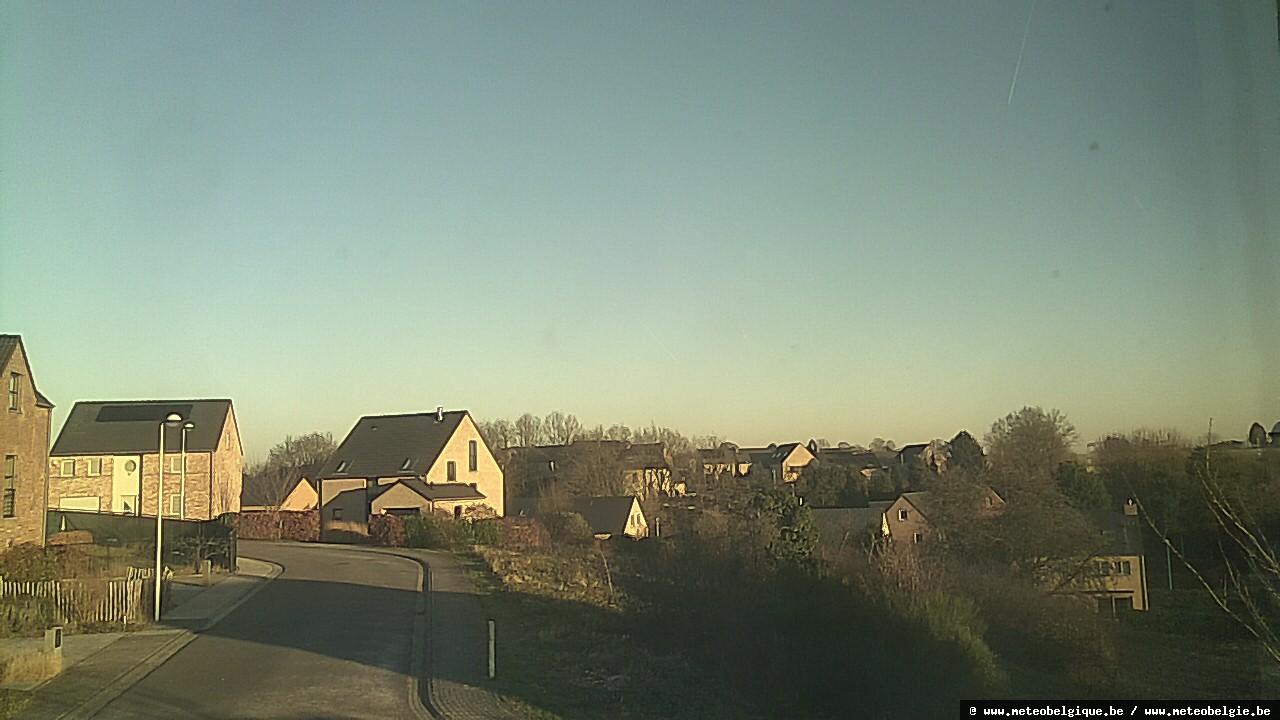 Un matin localement très froid. Dans les Cantons de l’Est, on observe –19,3°C à 8h à Bullange (565m). Presqu’au même moment (8h10), on mesure –17,2°C à Cobru (457m), au nord-nord-est de Bastogne. La Gaume, toujours à 8h, enregistre des valeurs très basses aussi, avec –12,8°C à Buzenol, –14,1°C à Étalle et –14,9°C à Chiny-Pin (là, le minimum de –15,1°C a été atteint 20 minutes plus tôt).
