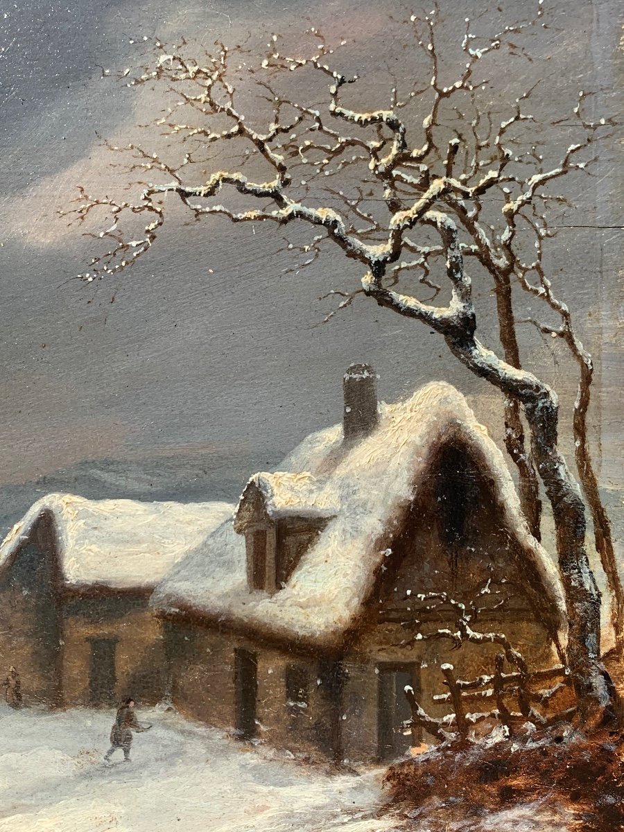 Peinture anglaise représentant une diligence aux prises avec la neige, James Pollard, 1837