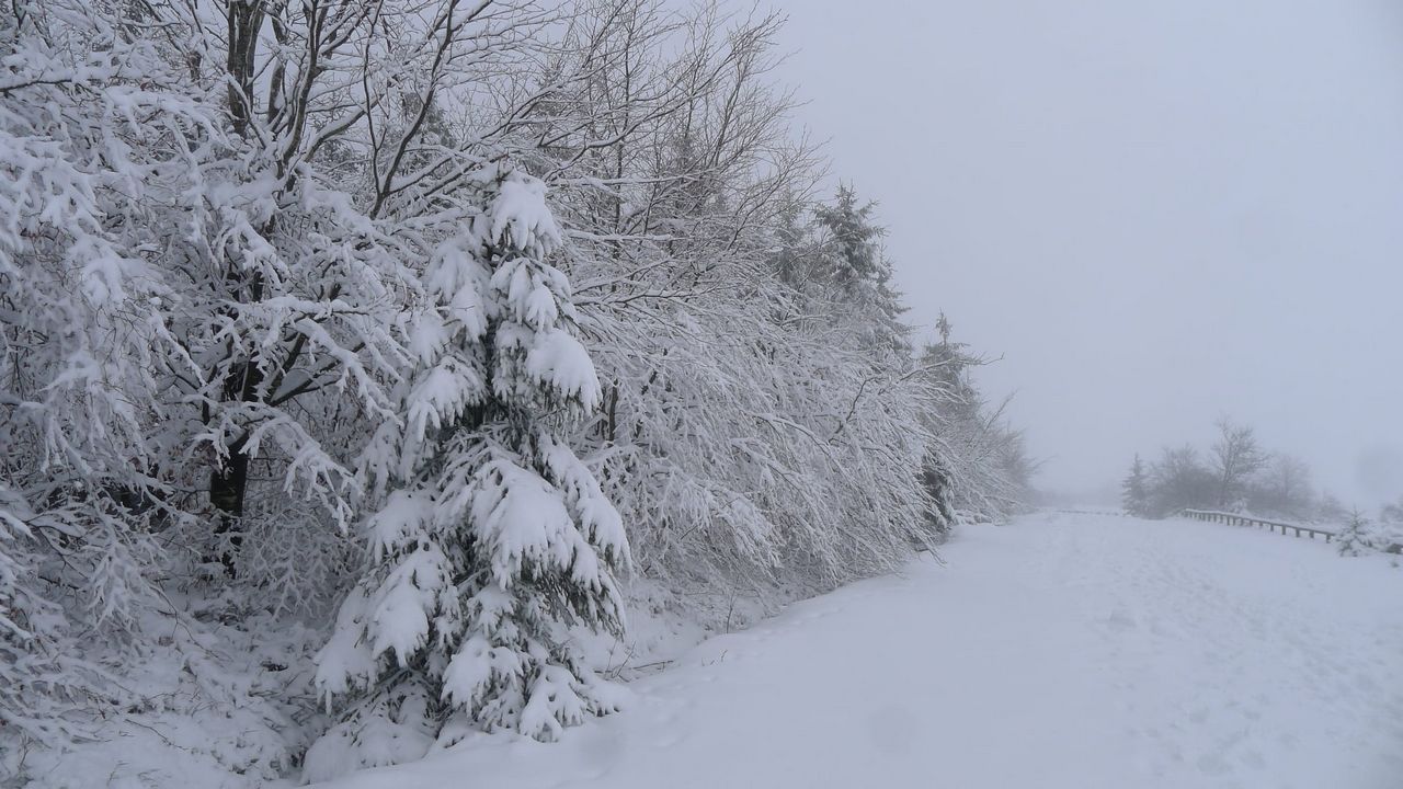 Retour temporaire de la neige à la Baraque Michel, le 11 février 2022.