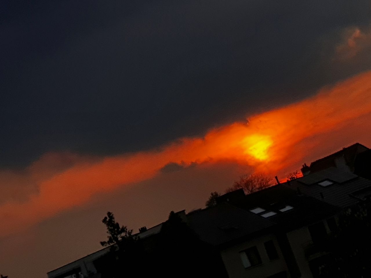 Quand le soleil rougeoyant du couchant invite les nuages pour un spectacle de la Nature, comme ici le 1er mai 2022 à Neder-Over-Heembeek.