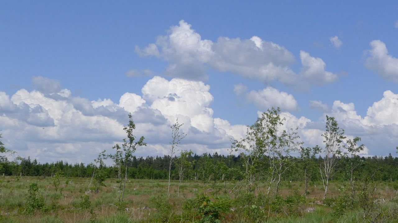 Quelques cumulus sur le plateau des Hautes-Fagnes, au Signal de Botrange, ce 23 juin 2022.