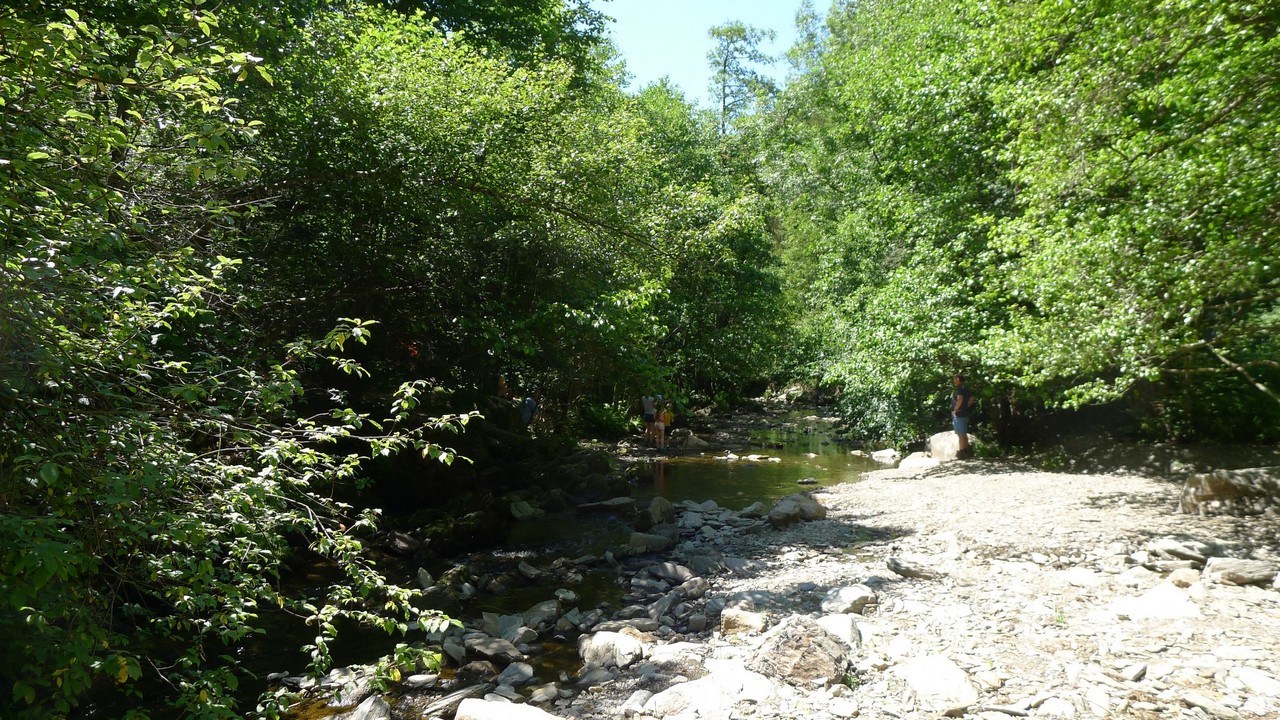 Les petits cours d'eau sont au plus bas en Belgique, dû au manque de pluies de ce mois de juillet, comme ici le Bayeron à Xhoffraix, le 13 juillet 2022 .