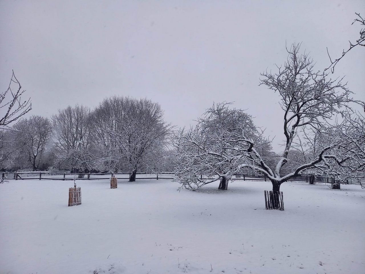 Quelques centimètres de neige recouvrent le paysage un peu partout, comme ici à Braine-L'alleud ce 8 mars 2023.
