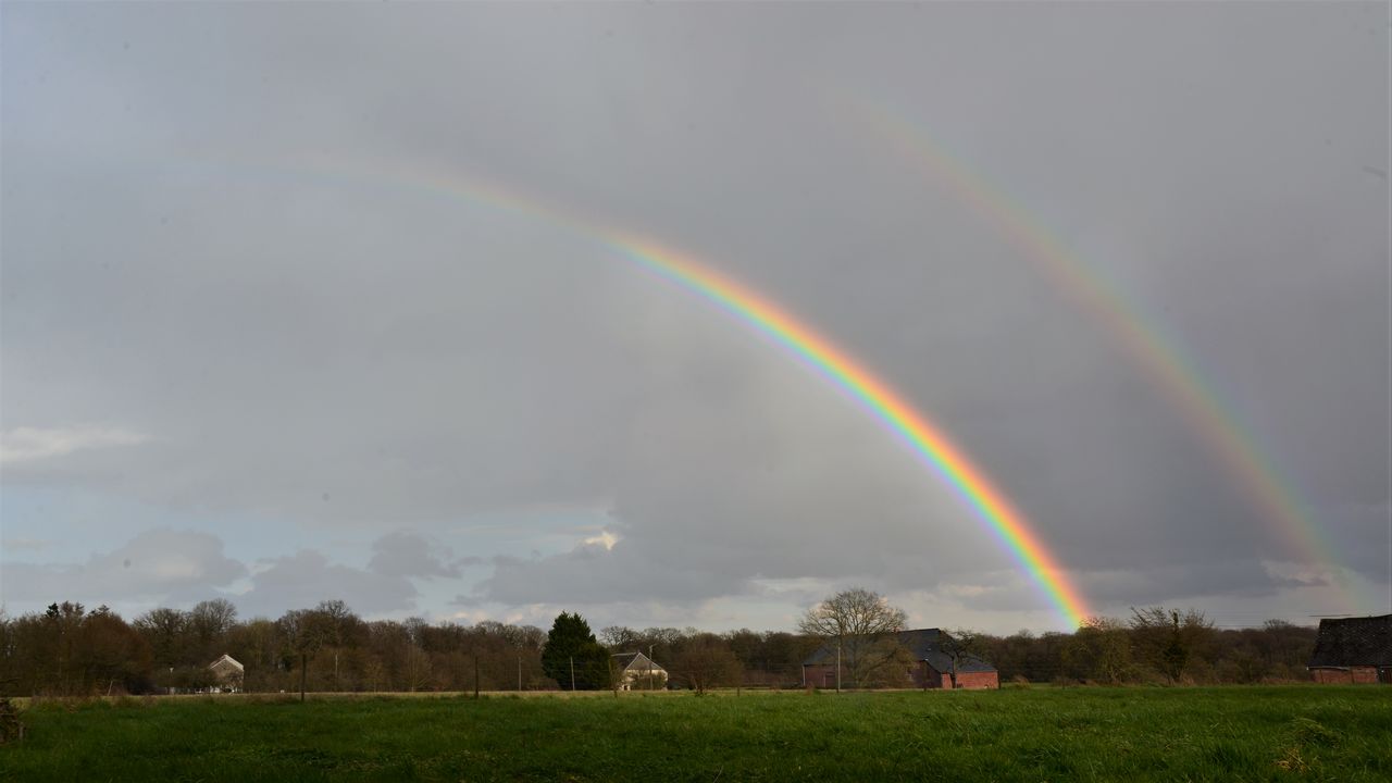 Double arc-en-ciel à Sautin, entre deux averses le 18 mars 2023.
