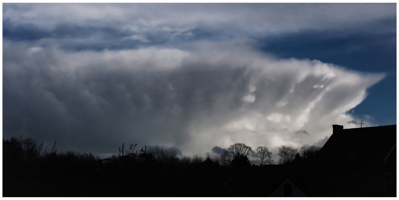 Cumulonimbus au dessus des Hautes Fagnes ce 30 mars 2023, ici à la Baraque Michel.