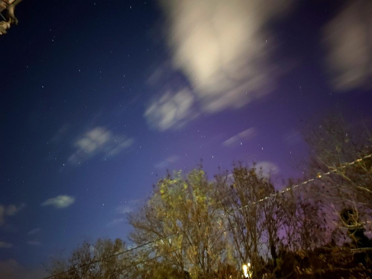Le cycle solaire s'approche de son maximum, avec une activité forte, souvent propice à l'observation d'aurores boréales, même à nos latitudes. Ce fut le cas le 5 novembre 2023 à Jemeppe sur Meuse, même si il aura fallu un temps de pose assez long pour en capturer les couleurs rougeâtres, juste derrière les arbres, d'où l'effet de bougé sur la photo.