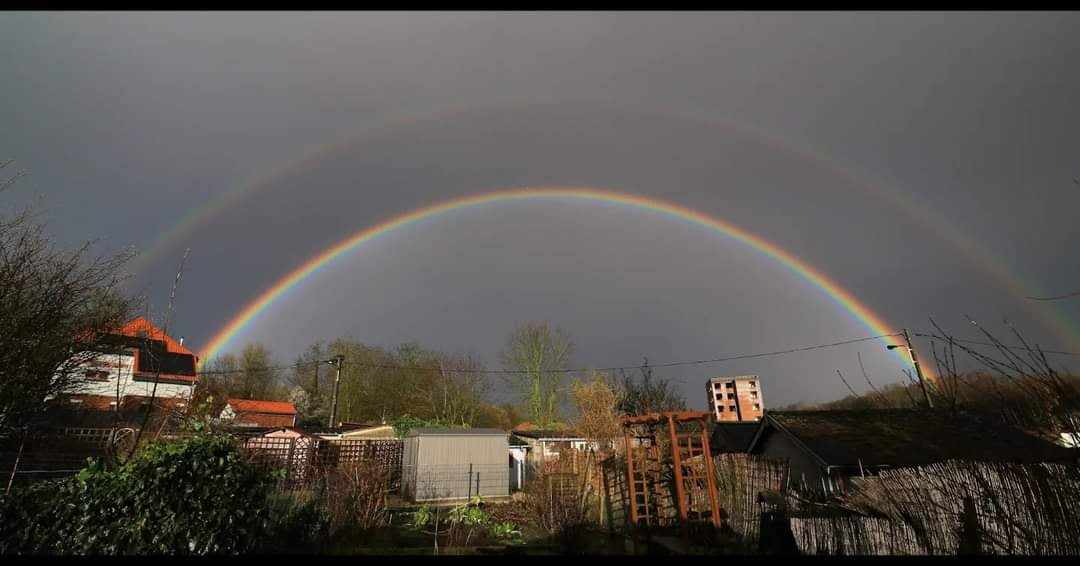 Un double arc-en-ciel observé après une averse le 22 février 2024 à Nivelles.